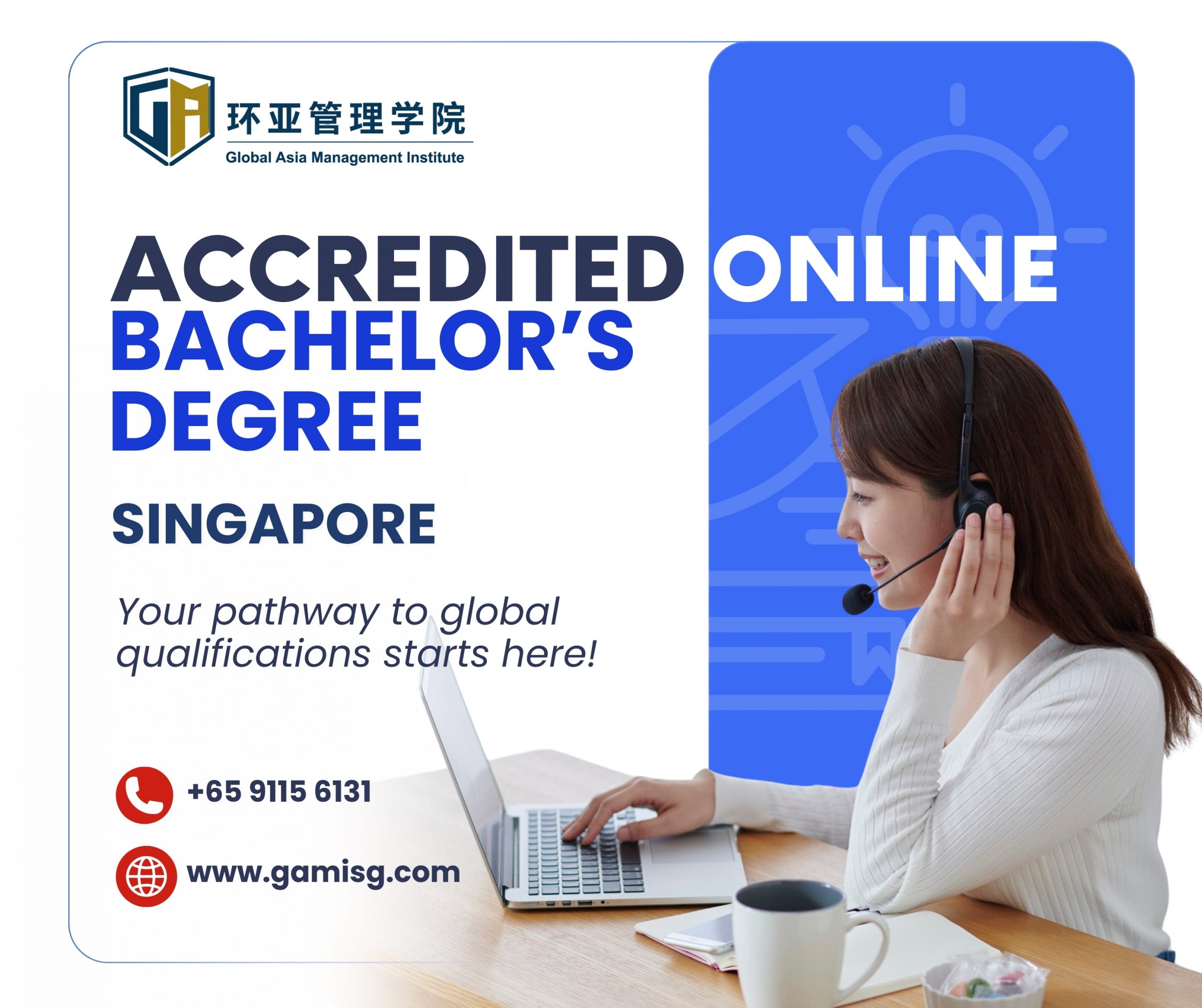 At Global Asia Management Institute (GAMI) we believe education should empower your future without disrupting your daily life. Our accredited online bachelor’s degree in Singapore offers a meaningful pathway toward better opportunities and long term growth. Whether you choose mathematics communications engineering or another discipline we are here to guide you from enrollment to graduation.
